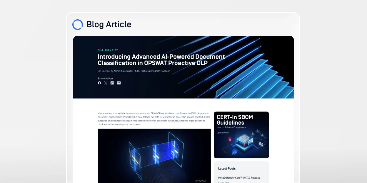 Data Loss Prevention (DLP) can help prevent potential data breaches and regulatory compliance violations by detecting and blocking sensitive, out-of-policy, and confidential data in files and emails, including credit card numbers and social security numbers. OPSWAT Proactive DLP supports a wide range of file types, including Microsoft Office and PDF. AI-powered Document Classification detects adult content in images and offensive language in text.