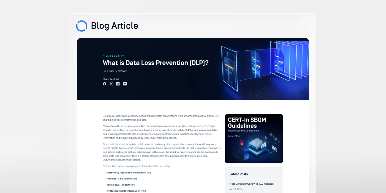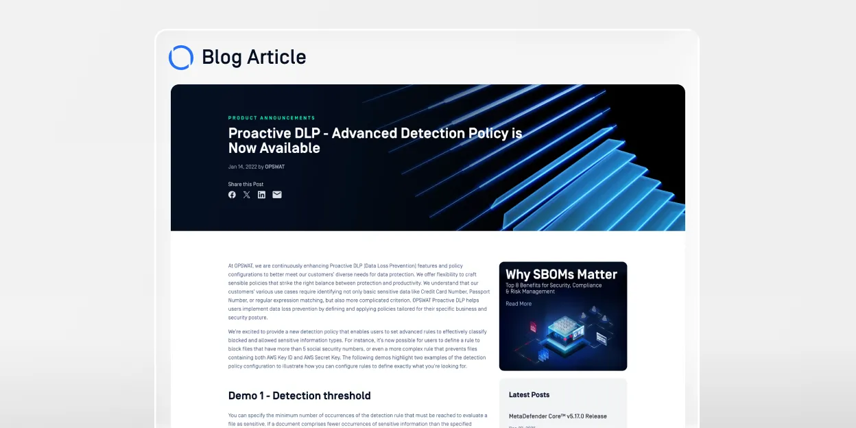 With MetaDefender Core and MetaDefender ICAP Server, you can content-check files for sensitive data when they are uploaded or downloaded from web applications, as well as check files that are being transferred through web proxies, secure gateways, web application firewalls, and storage systems.