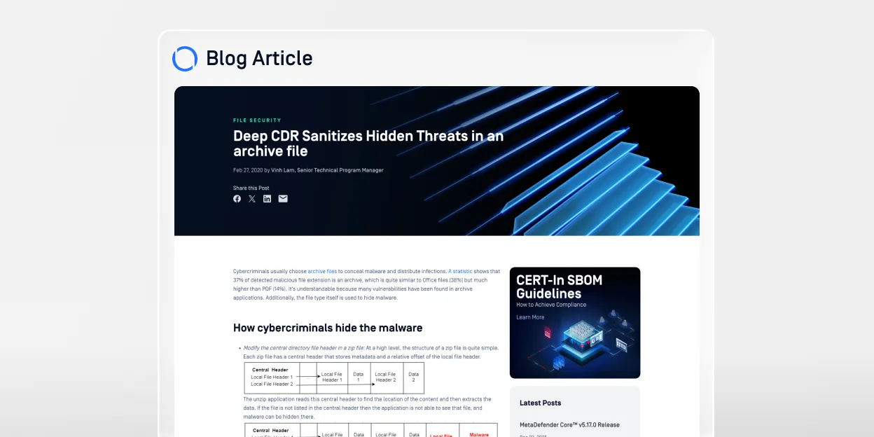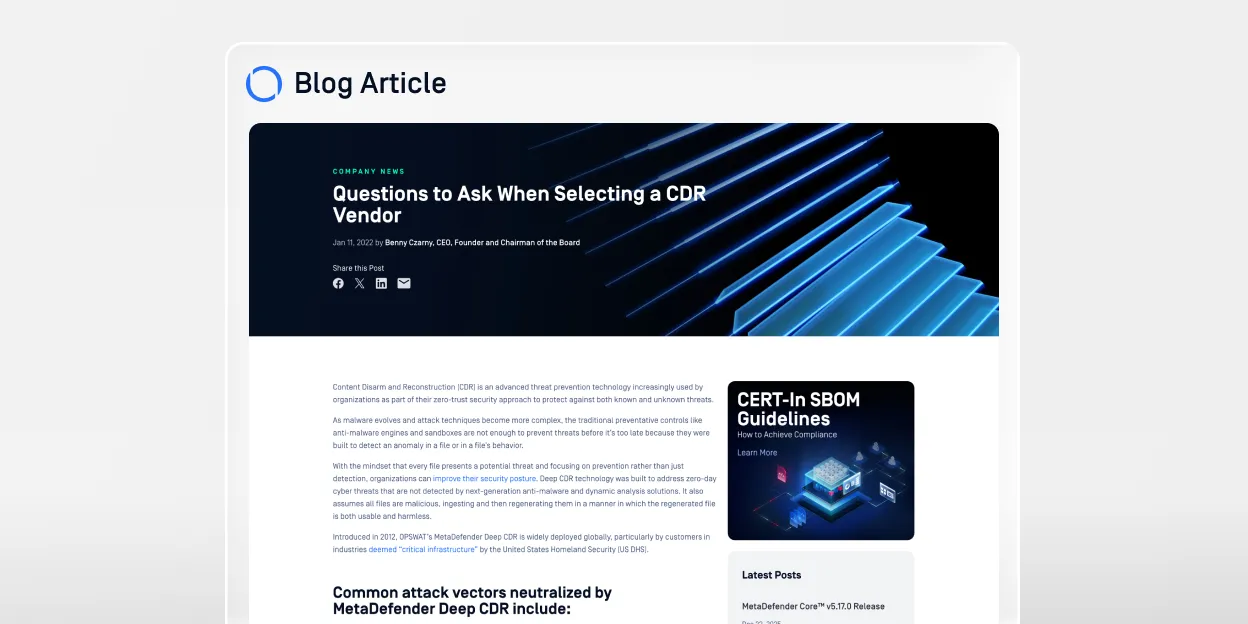 Traditional antivirus solutions miss unknown threats. Deep CDR eliminates them entirely. Each file is disarmed and regenerated, ensuring only safe, clean and useable content reaches your systems.