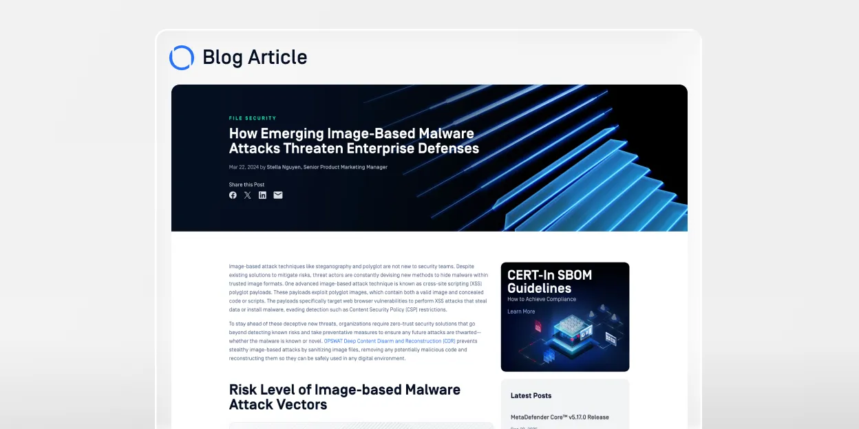 By focusing on prevention rather than just detection, Deep CDR enhances anti-malware defenses, protecting organizations from file-based attacks, including targeted threats. It neutralizes potentially harmful objects in files traversing network traffic, email, uploads, downloads, and portable media before they reach your network.